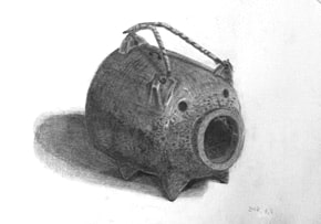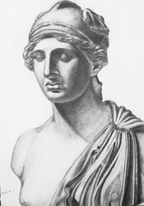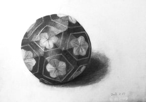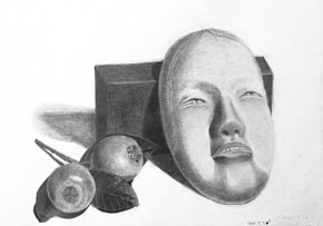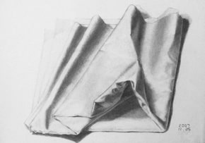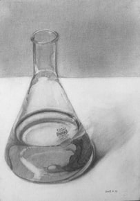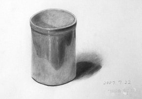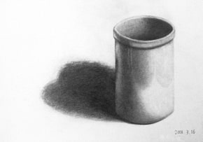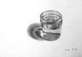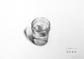 カリキュラム終了後もデッサンを継続されたかたの作品群です。ガラス、金属、陶器…いろんな質感に挑戦しています