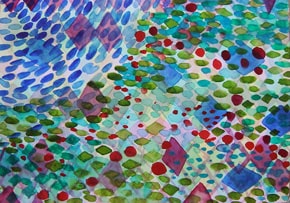 水彩画制作には欠かせないプロセス「水張り」ののち、透明水彩で自由に色を重ねて遊ぶ回です。