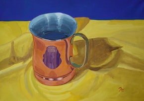 不透明水彩(ガッシュ)2作目。映り込みのある金属と布の質感に挑戦します