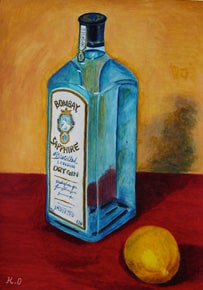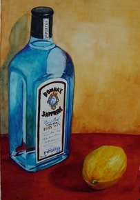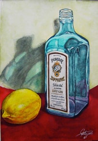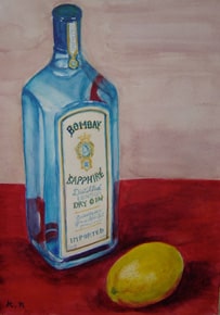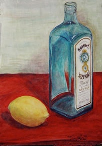 青いビンとレモン